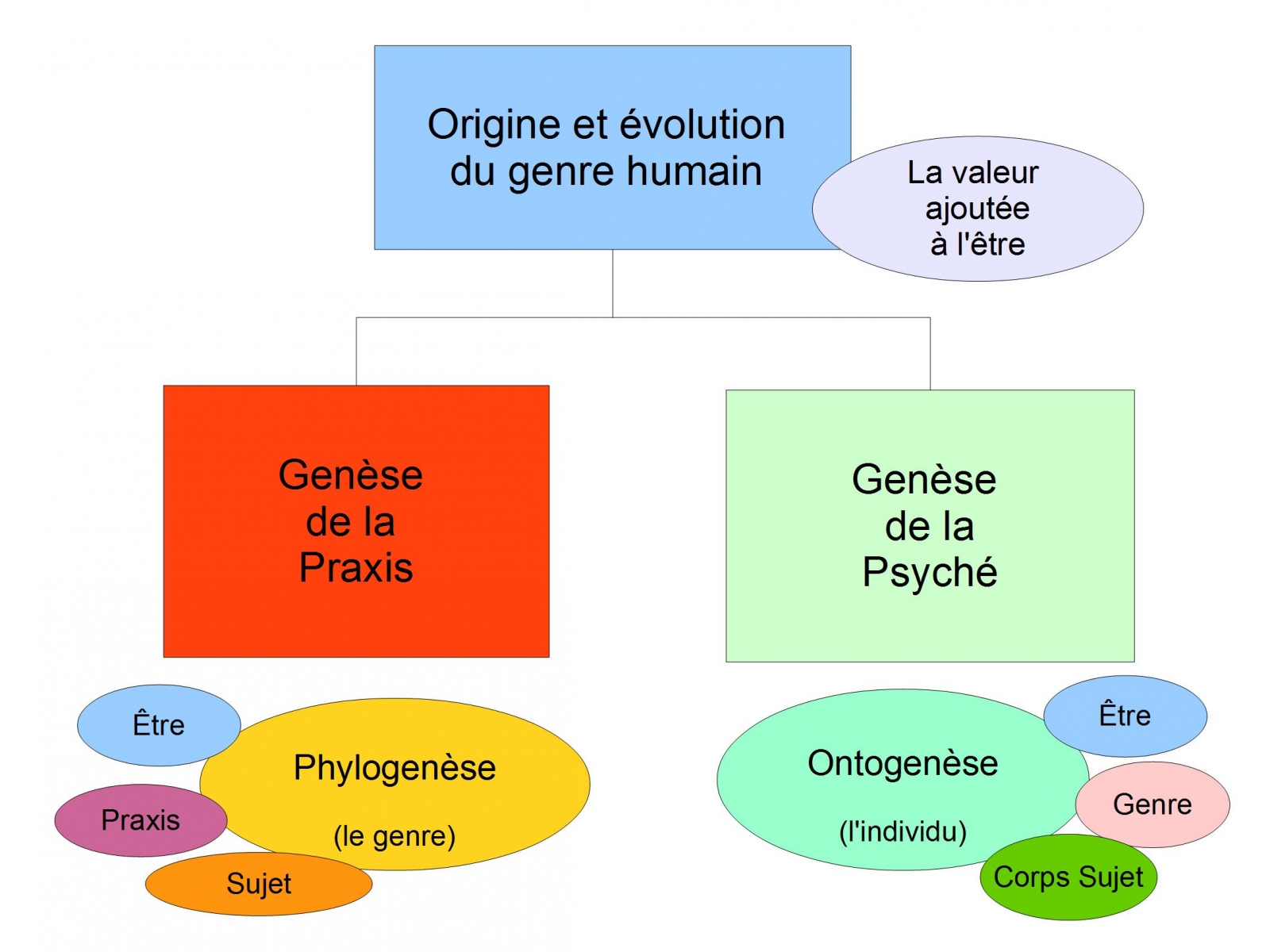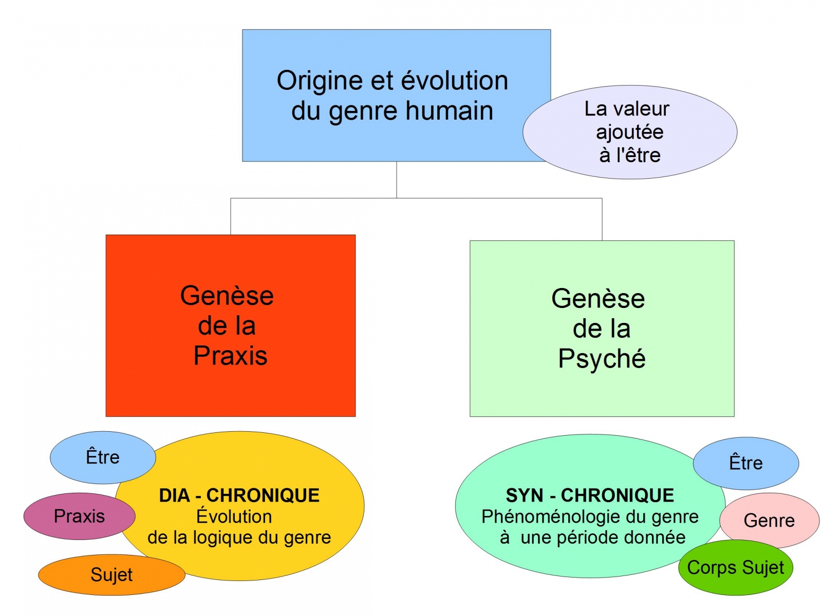 “L’Être, la Praxis, le Sujet” ( Chemins de la praxis ) comporte deux “niveaux” Genèse de la Praxis, livre 1 à 7. : dialectique entre l’être, la praxis et le sujet pour le genre, pour la phylogenèse, selon un axe...